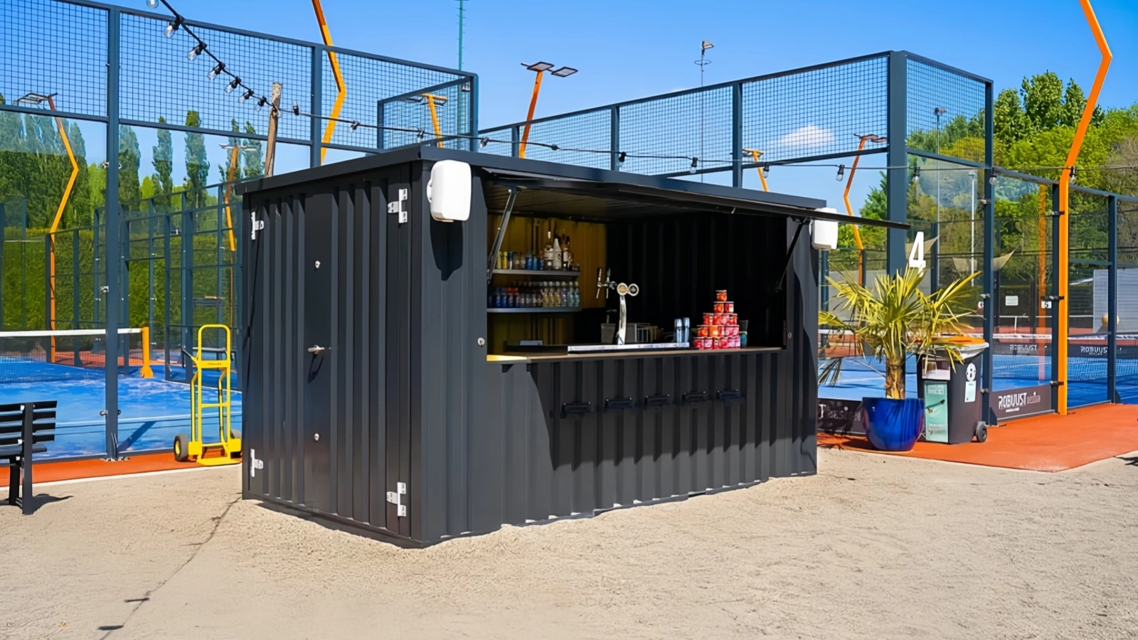 Al establecer un club de pádel moderno, los servicios comerciales son igualmente cruciales, UNIPADEL proporciona unidades prefabricadas en contenedores diseñadas específicamente para uso comercial y de servicios; en comparación con los métodos de construcción tradicionales, estas soluciones acortan significativamente el ciclo de construcción y reducen el riesgo de inversión, lo que ayuda al club a iniciar rápidamente sus operaciones comerciales.