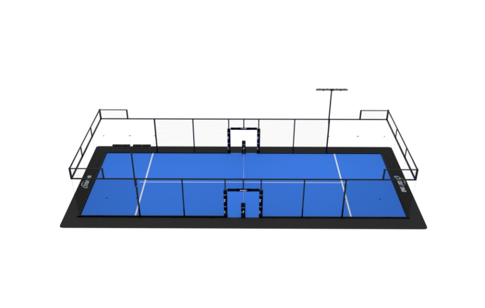 The Super Panoramic Padel Court galvanized steel mesh and steel column are both Q235B model,the columns and door posts are 80x40x3mm (3m long), the steel mesh is 50x30x2mm, the opening is 50x50x4mm, the upper cross tube is 150x50x3mm, the lamp post is 50x30x2mm, and the center mesh post is 80x80x3mm, height 980mm, surface powder spraying treatment.